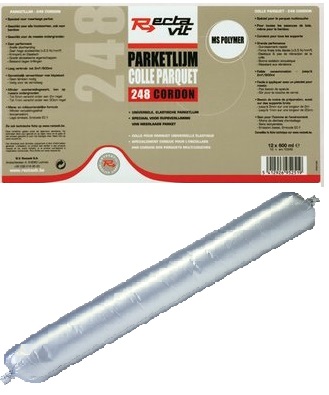 Colle universelle élastique pour parquet à base de polymères MS, spécialement conçue pour l’encollage par cordons de parquet multicouches. Convient à tous les bois.